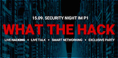 Datacenter What the Hack! LIVE Hacking · Live Talk · Smart Networking · Exclusive Party Am 15. September ist es wieder soweit! Zum achten Mal wird die strengste Tür Münchens geöffnet und wir laden zu DEM Smart-Networking Event in den P1 Salon ein. Wir lassen den Abend mit dem Stage Talk Thema „Internet Security“ beginnen, anschließend... Datum 15.09.2015 OrtP1 München Event